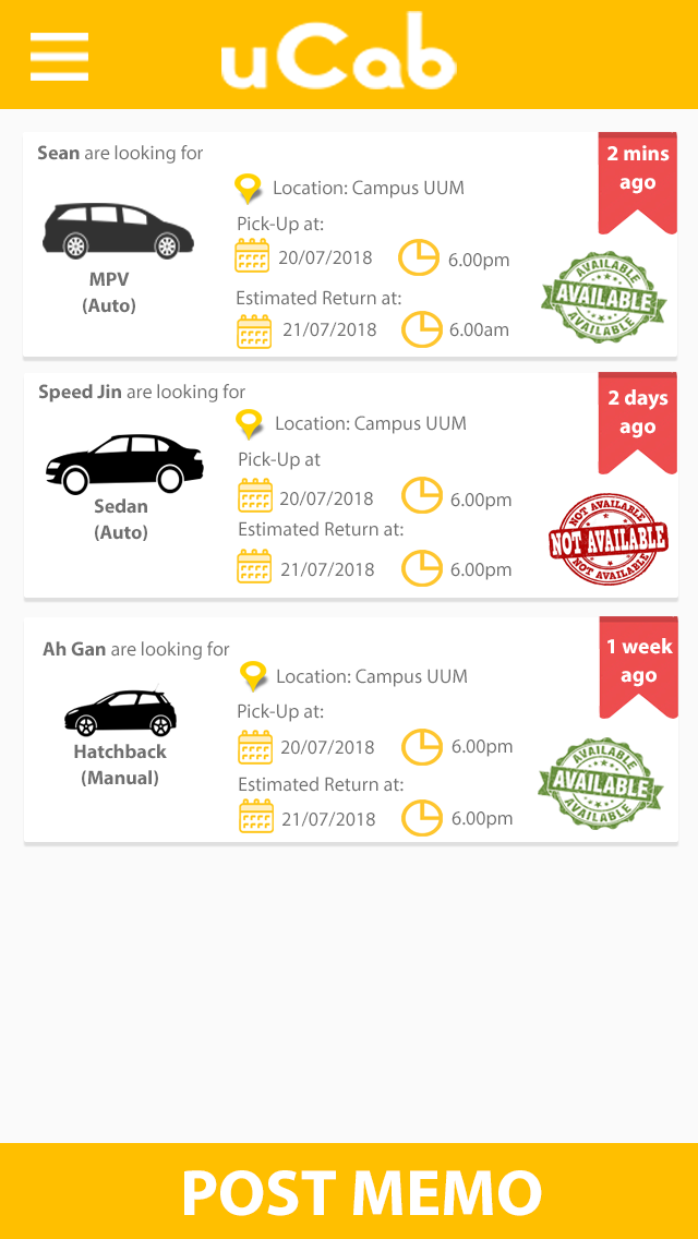 This system was created to provide a car rental platform to the users and supplier. This is a native mobile application solution for both Android and IOS. Through this system, users can post a memo to rent a car and the car suppliers will approach the users.